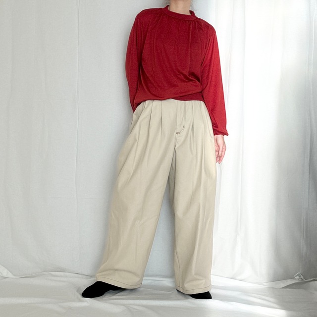 ウール糸100%素材のクルーネックプルオーバーカットソーです。 日本製のカットソーで、毎日の着こなしに馴染みやすく、ディテールにこだわりがあります。 身につけると心地よく、薄手なのに暖かいので着膨れの心配もありません。 袖口や裾端を軽やかにふちどるメローロック仕様や、バックスタイルのピンタックが大人らしい静かなアクセントになります。 こだわりの上質ウールを使用した品のよい天竺カットソーの生地は、なめらかな肌触りで着心地がよく、上品な光沢感があります。 大人の着こなしにぴったりな上質な風合いで、手洗可能なところもポイントです! ※中性洗剤使用をおすすめいたします。 ●カラー エクリュ ブラック ●サイズ フリー / cm 着丈 約65 身幅 約42 肩幅 約37 袖丈 約58 アームホール 約20.5 ●素材 毛 100% ●原産国 日本 ――――――――――――― // ♪ PONT DE CHALONS(ポンデシャロン) - フランス生まれ、鎌倉育ち - セーヌ川に面した歴史ある町 「トロワ」のシャロン橋 ( Pont de Chalons )の近くで、 BONNETERIE DU PONT DE CHALONSというニットファクトリーとして1960年代に設立。始まりは、肌着や靴下の生産といわれています。 1978年オリジナルブランドとして日本での販売をスタート。 インポートのカットソーという概念が今よりメジャーではなかった時代から、 着こなしにこだわりを持つ女性の為に、日常をより自分らしく過ごすことのできる 「フランス生まれのワードローブ」を提案。2013年歴史と文化の薫る町、鎌倉に路面店をオープン。 のんびりとゆるやかな風が流れる鎌倉の町で、 地元のお客様に愛されています。 フランスのファクトリーブランド発祥のアイデンティティをベースに、 鎌倉の風に育まれた 自由な大人のワードローブをご提案します。