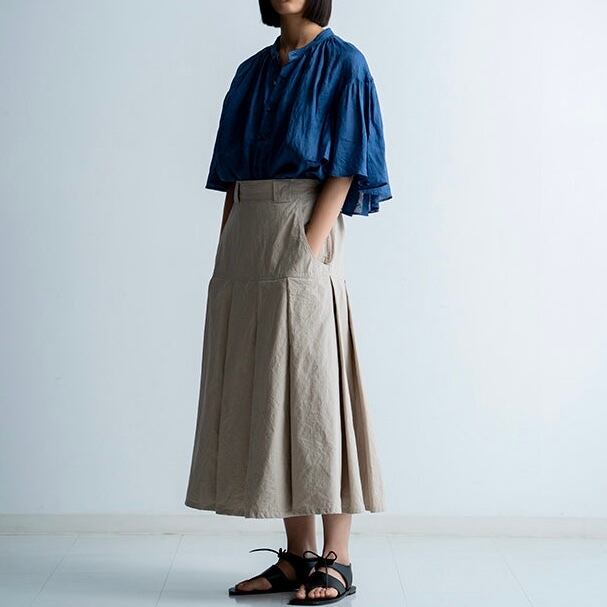 平織りウォッシュリネンのブラウスです。