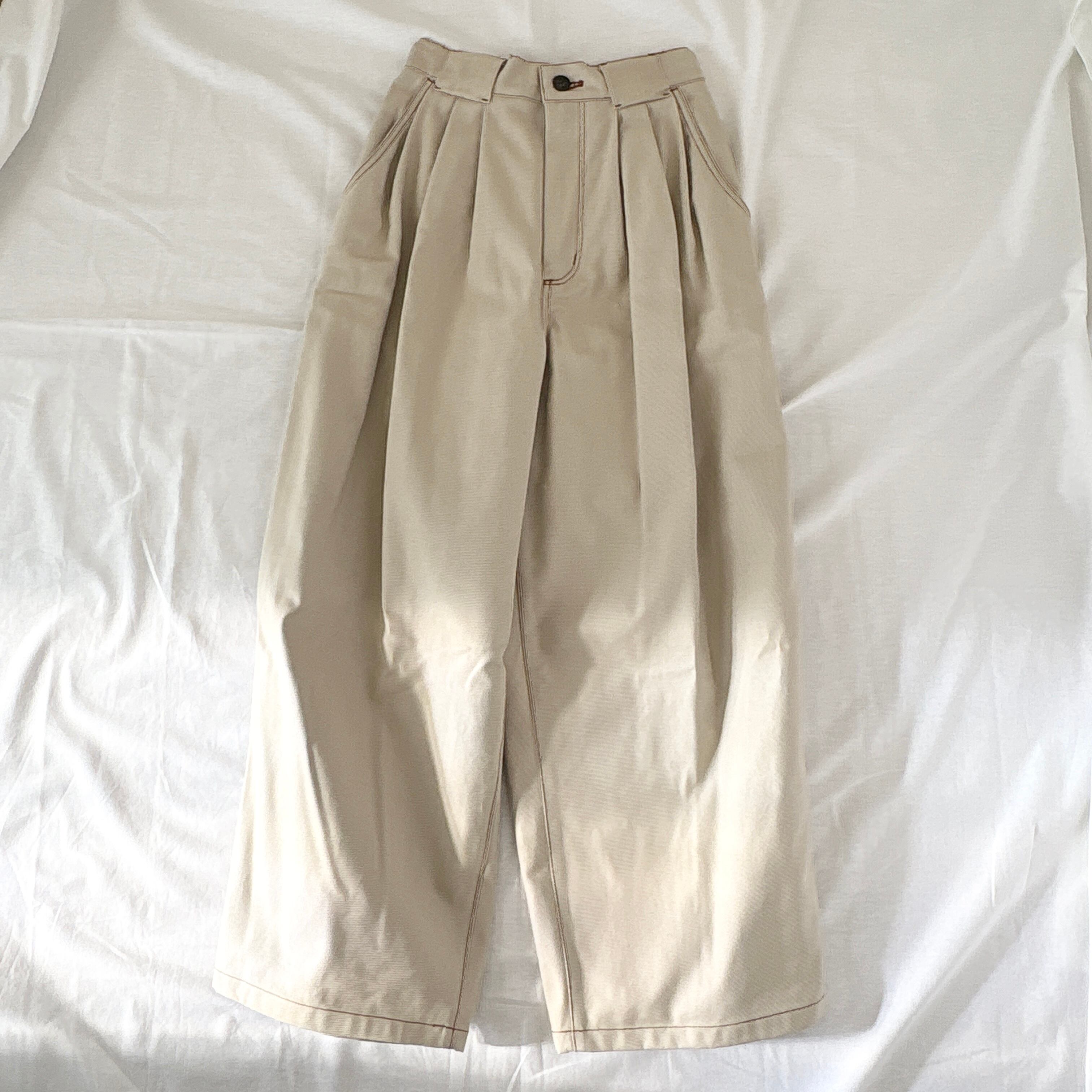 サイド3タックでゆとりを取ったワイドテーパードパンツです。程よいボリューム感と丈感で大人カジュアルに履いて頂けます。
