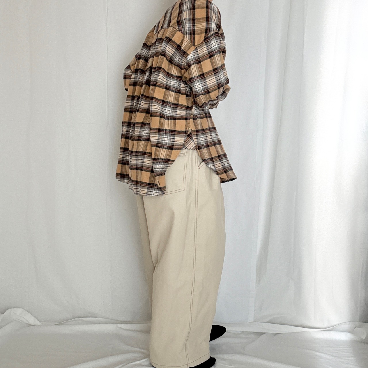 タータンチェック柄の柔らかいオーバーサイズのネルシャツ。