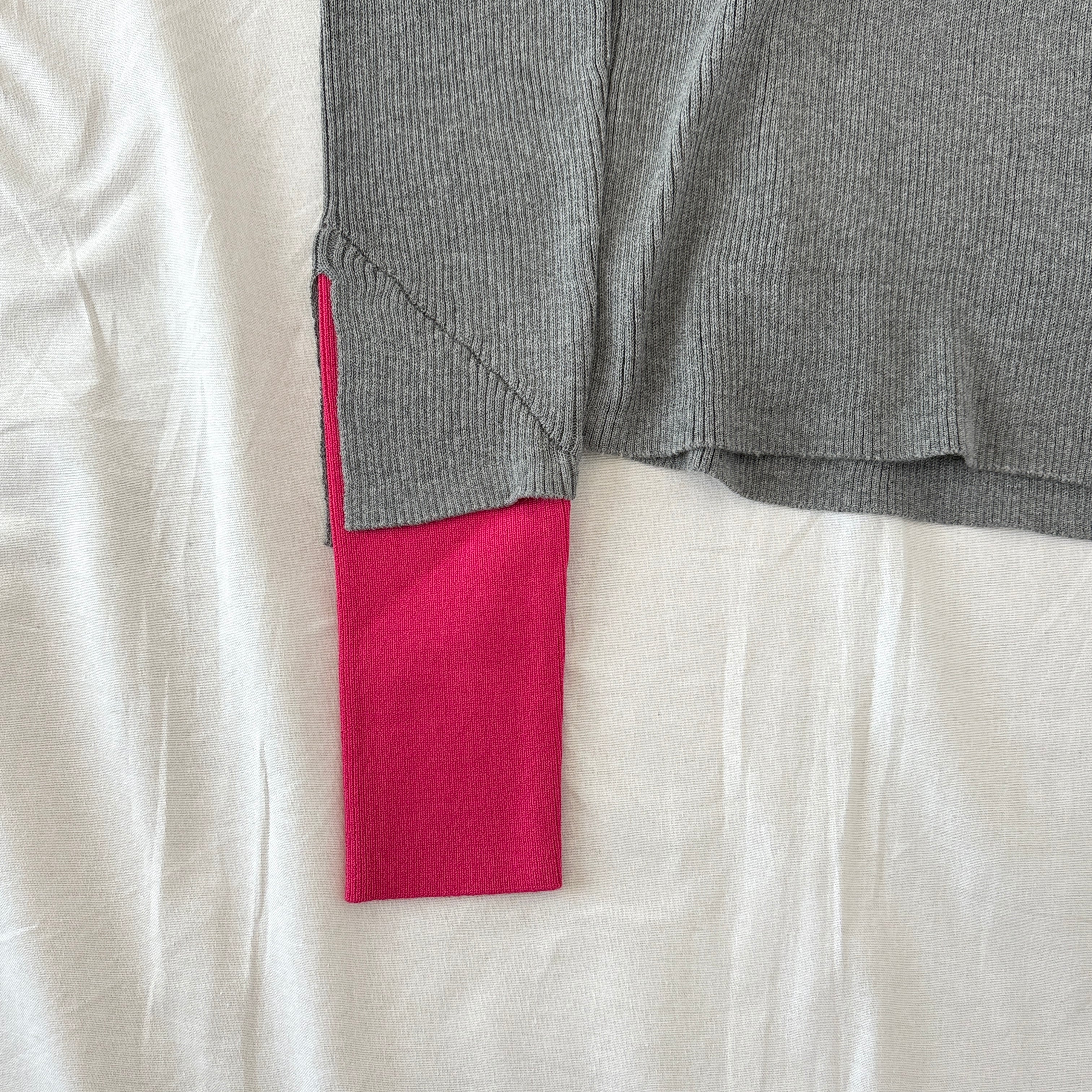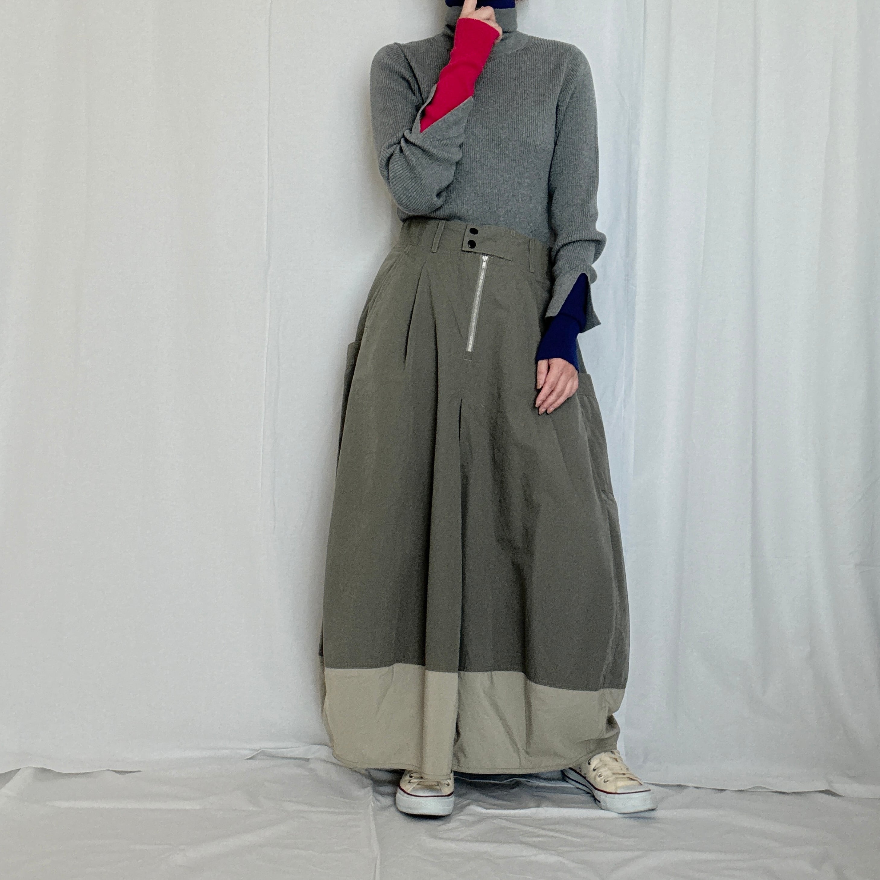 お袖とタートルがレイヤードで、クシュクシュと見せ幅を調整できます。また、お袖はスリットも効いており、動きのあるシルエットです。