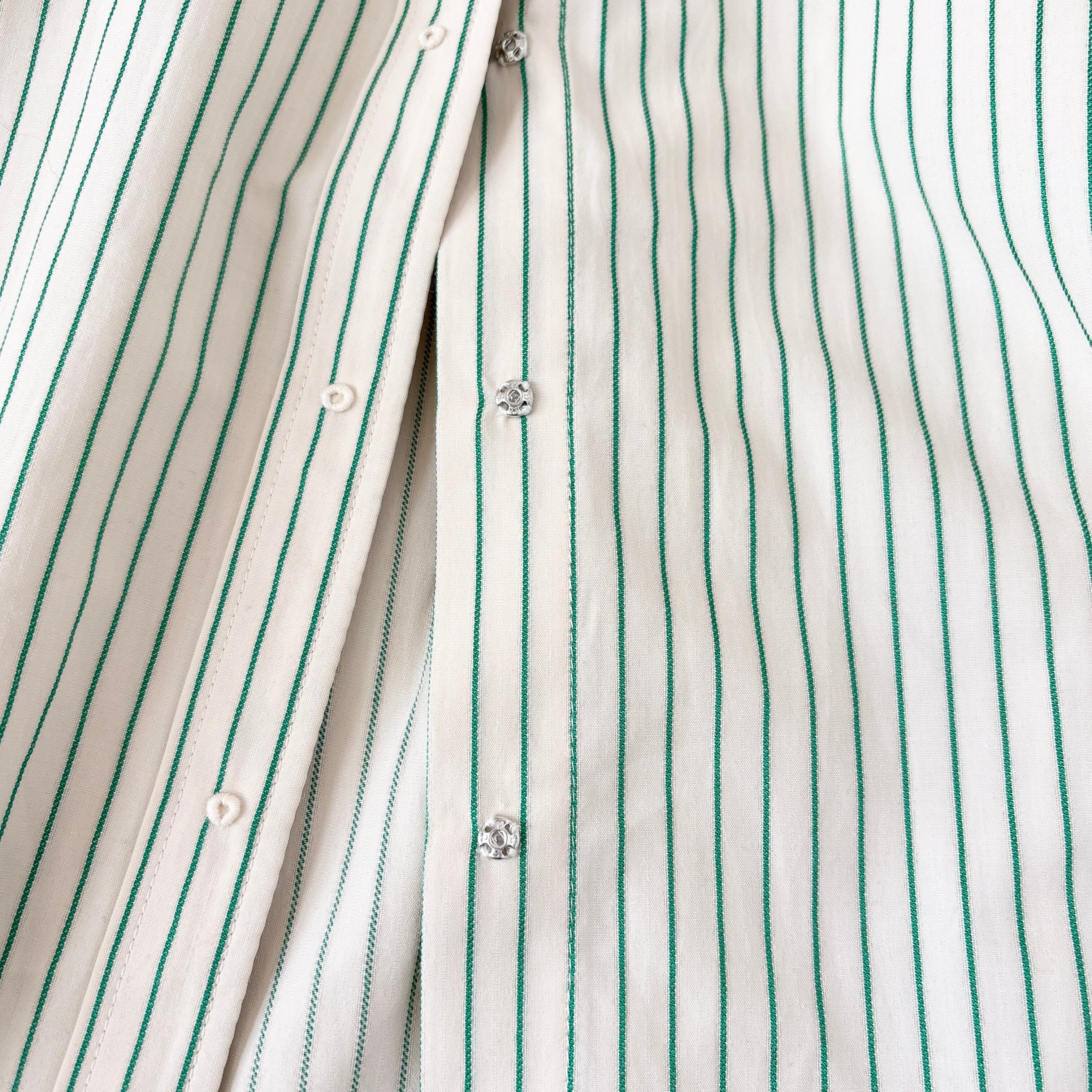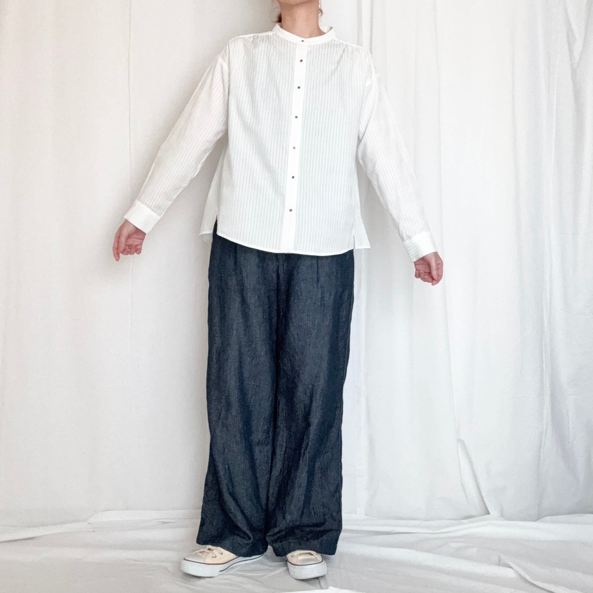 「いつも定評あるポンデシャロンの刺繡ボタンシャツシリーズ。小さなボタンのように見える刺繍のマルが拘りがある大人のカジュアルを底上げしてくれます。」