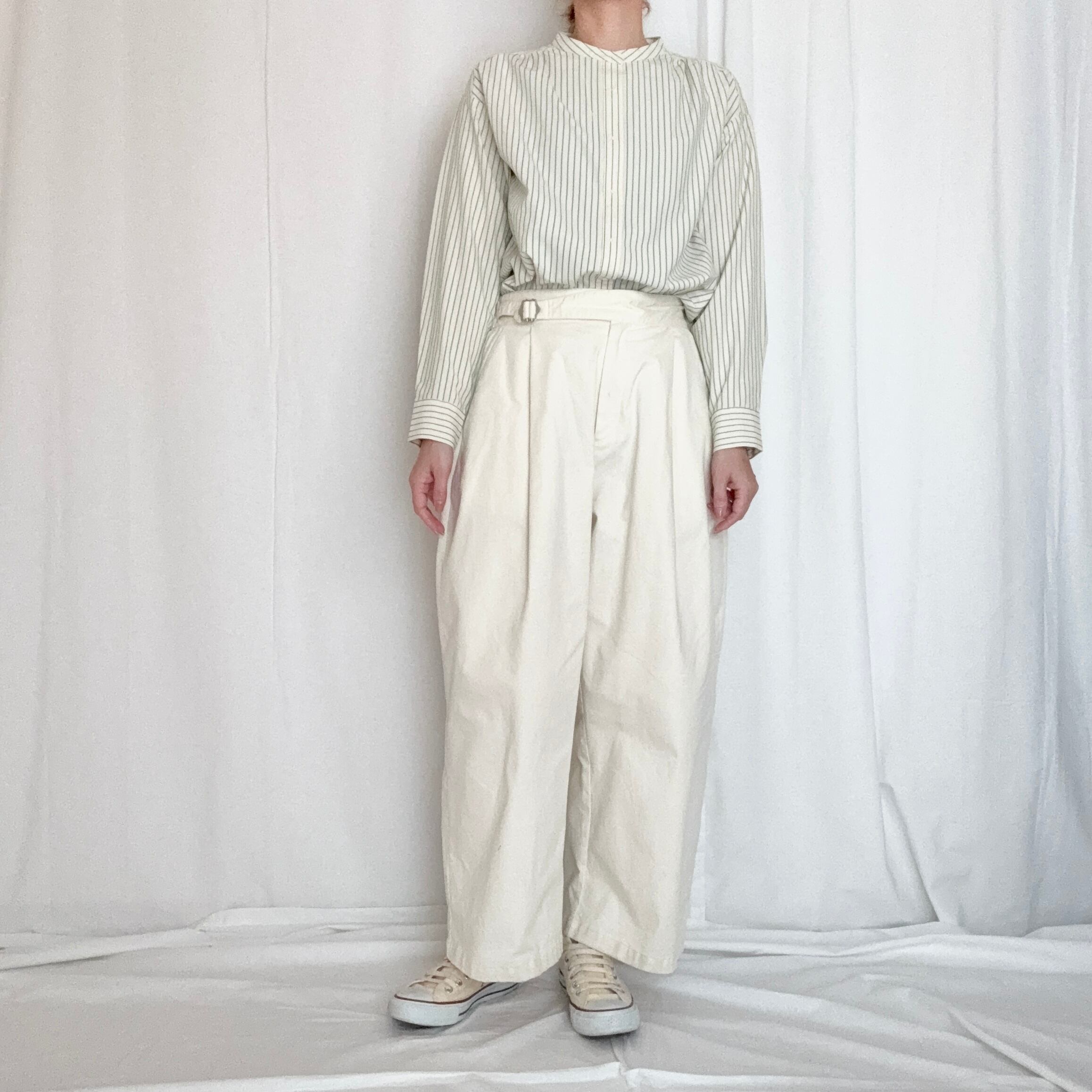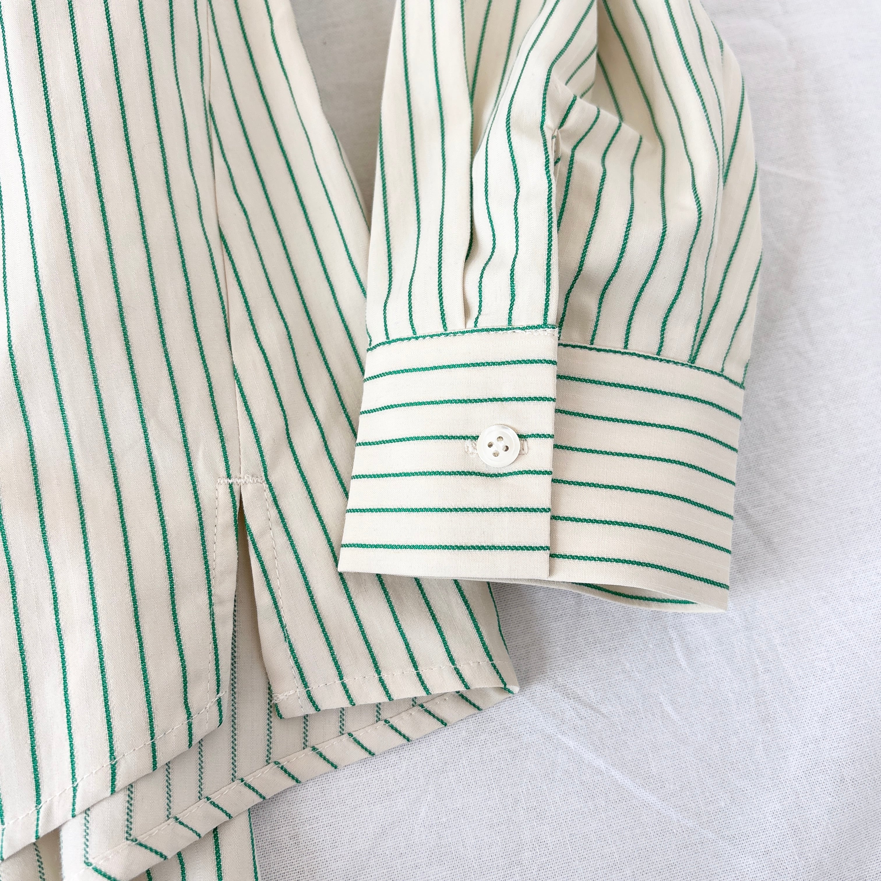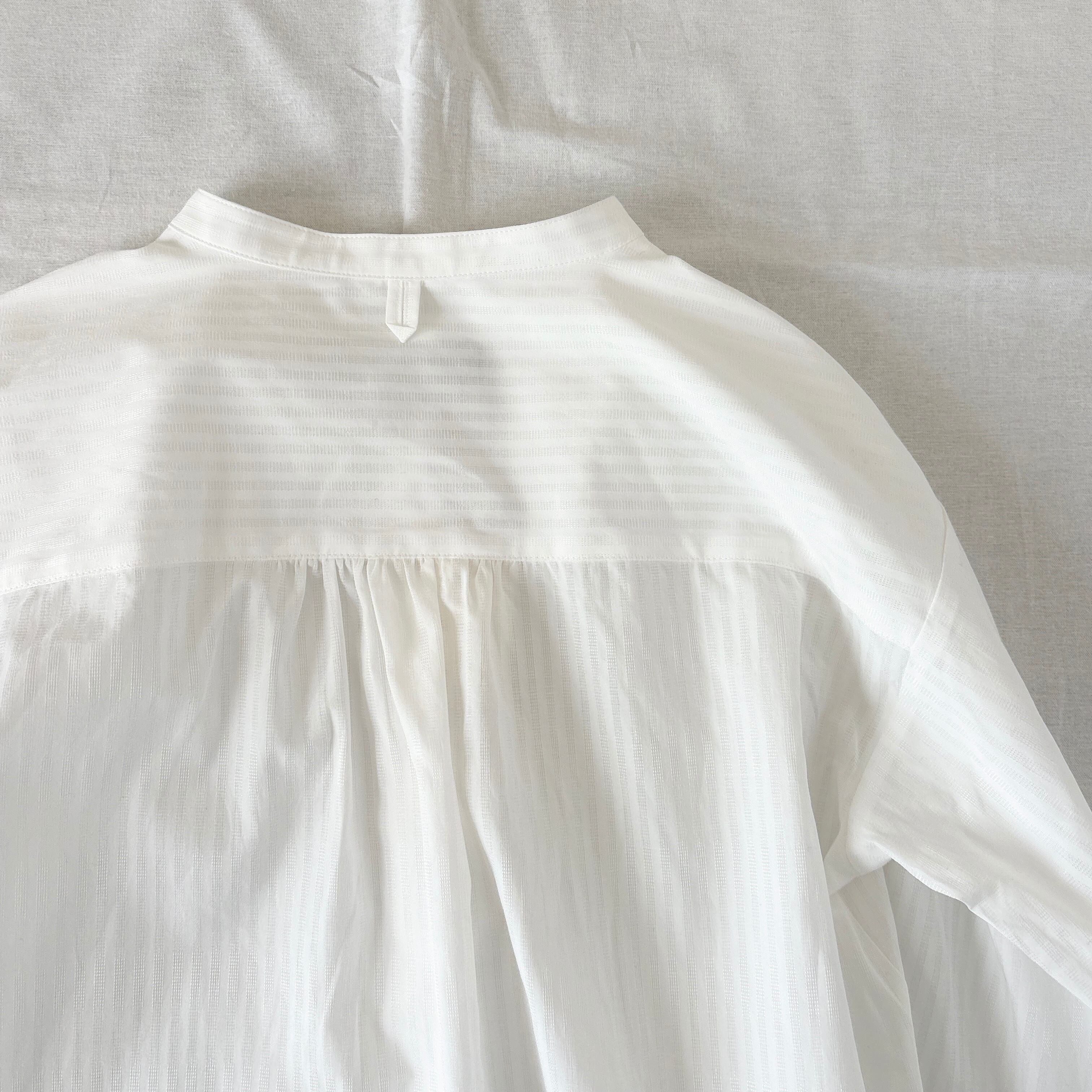 上品な光沢をまとった織りのストライプ柄とオフホワイトもオフ×オフの同色ストライプになっています。