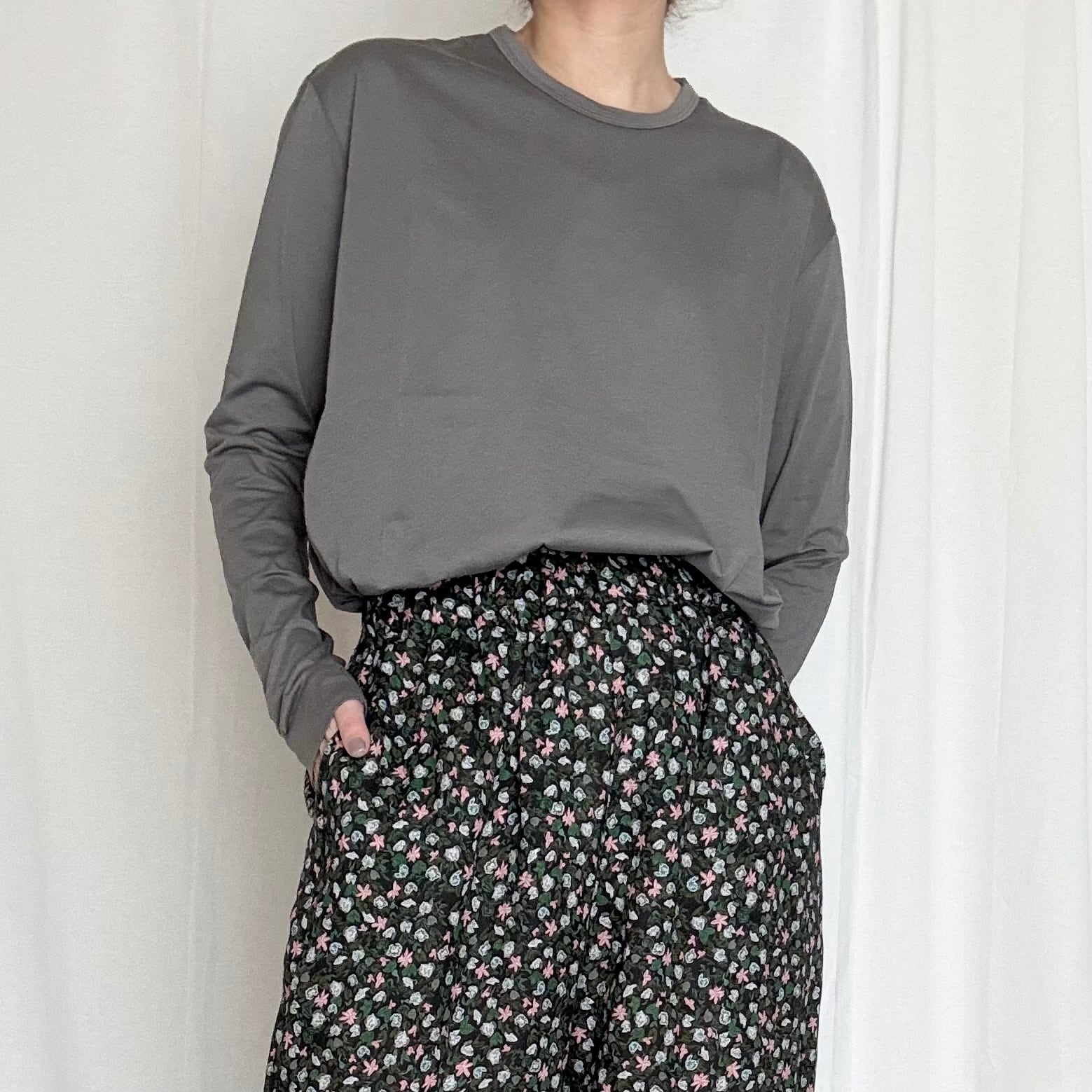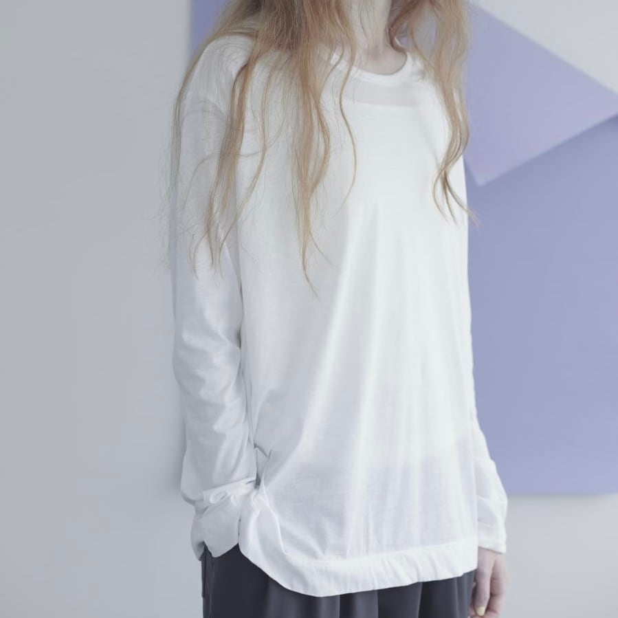 サイロマハラニ糸を使用したグレイス天竺の長袖Tシャツ。