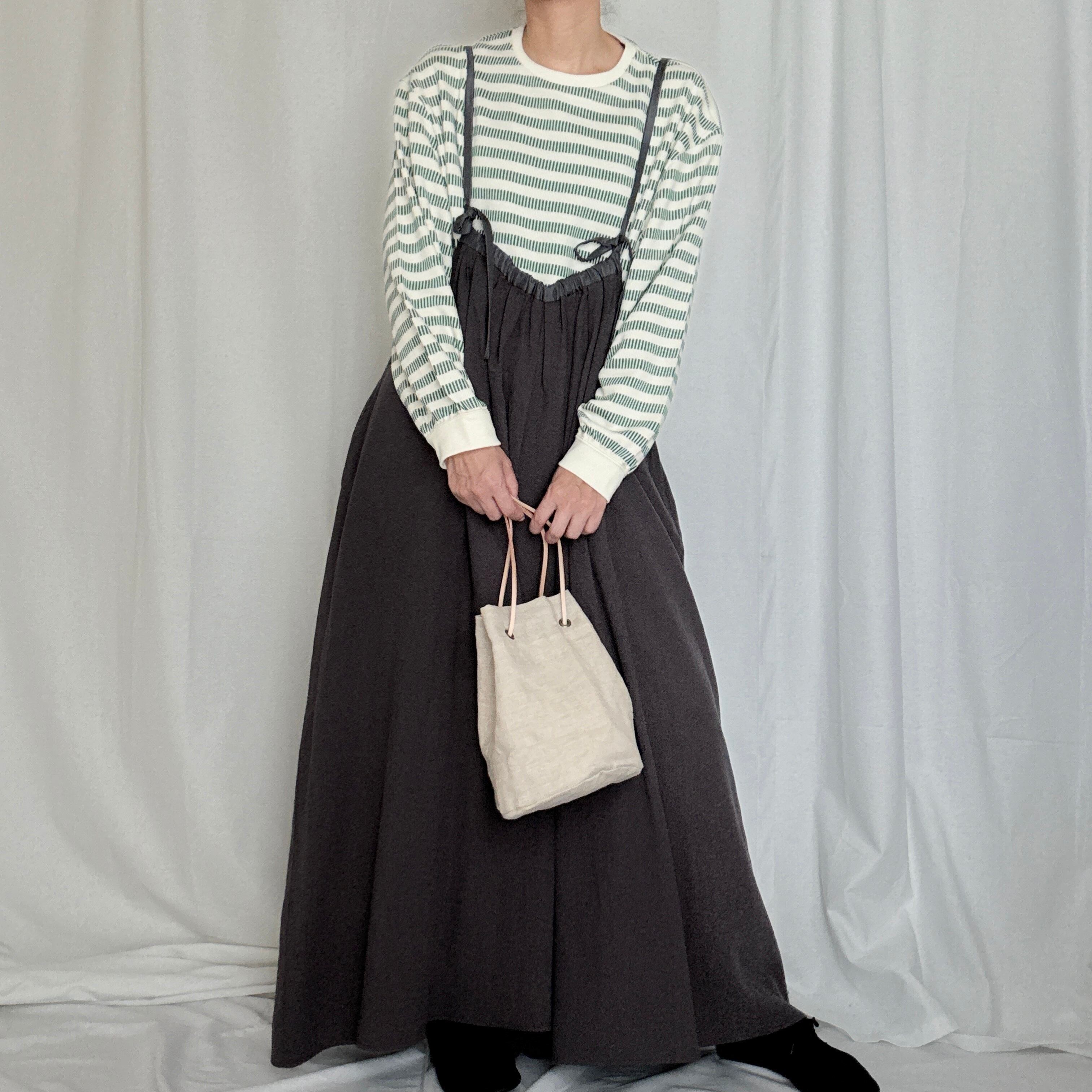 革紐の出し方によって2とおりの持ち方ができ、革紐を伸ばすと斜め掛けでもご使用いただけます。