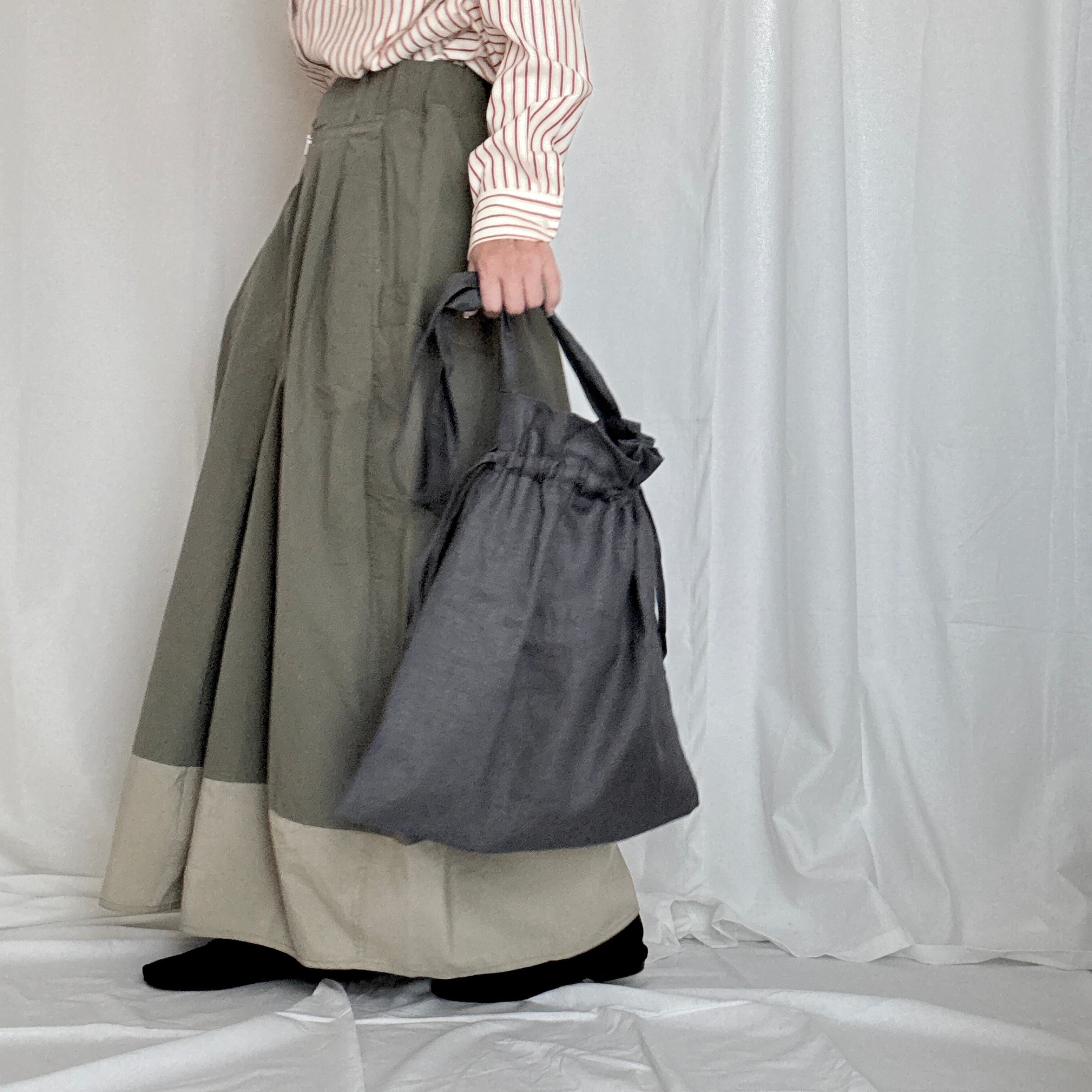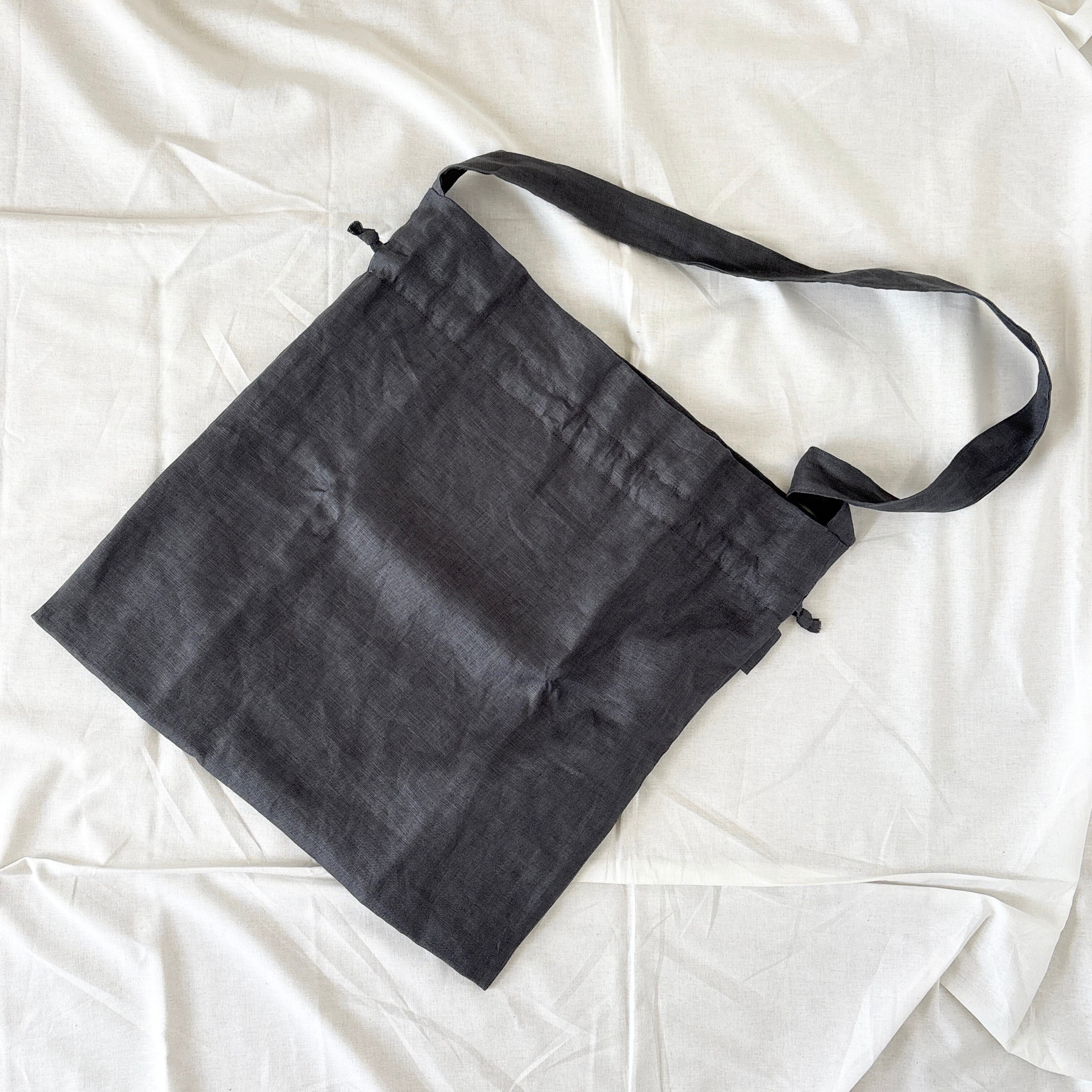 リネン100%日本製リネン巾着型ショルダーバッグ。